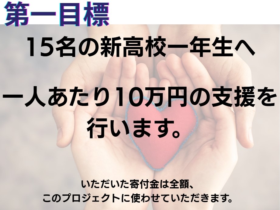 私たちは、一人でも多くの子ども達に新しい制服を着て、笑顔で安心して高校生活をスタートしてほしいと思い、このプロジェクトを立ち上げました。