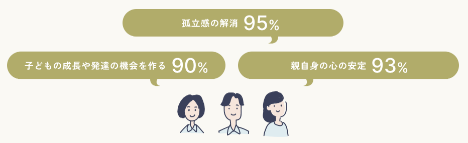 ホームスタートを利用した家庭の90%以上が、「孤立感が軽くなった」「子どもの成長や発達の機会につながっている」「気持ちが楽になった」と感じています。