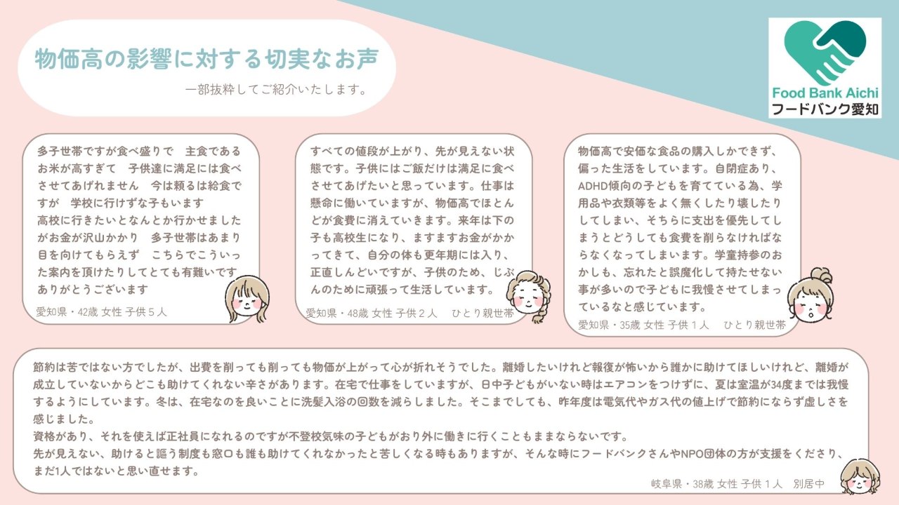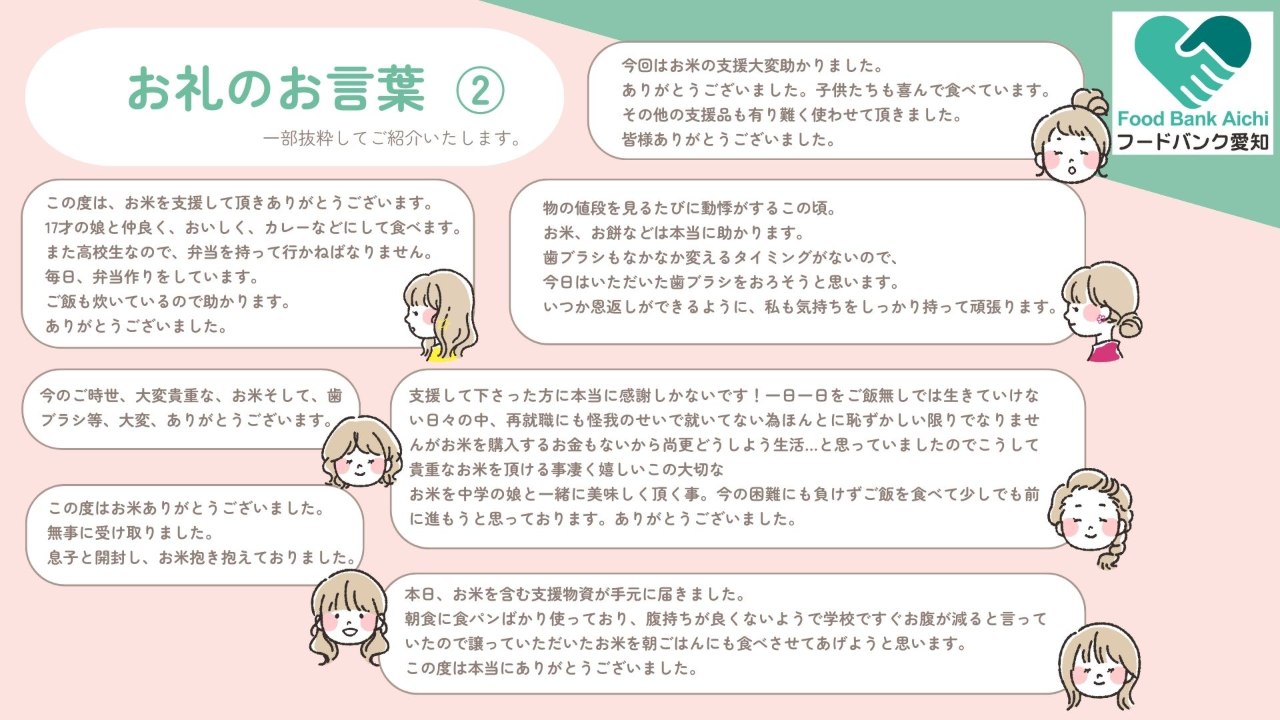 寄付食品受益者からのお声(団体・個人)