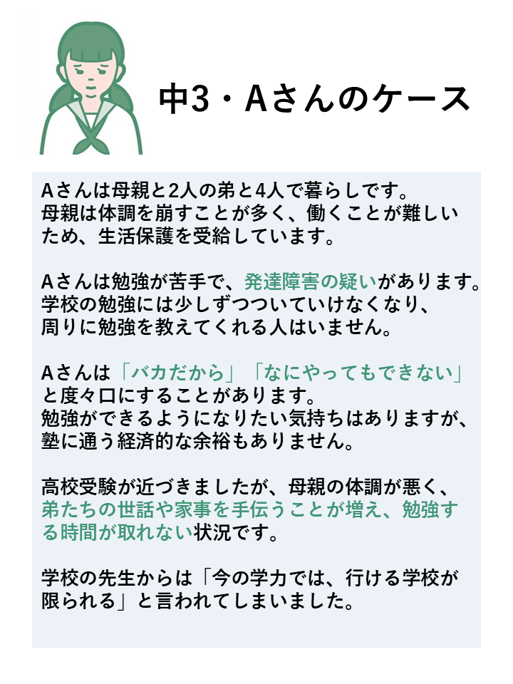 「勉強がわからないけど、うちはお金ないから、塾に行けない。」