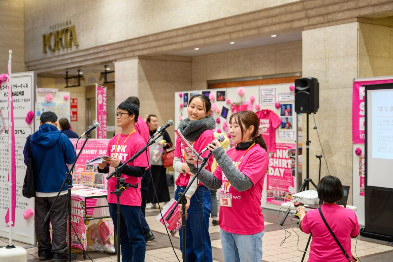 2月はピンクシャツデー月間です。皆さまもピンクのシャツや小物を身に付け、ぜひキャンペーンにご参加ください。